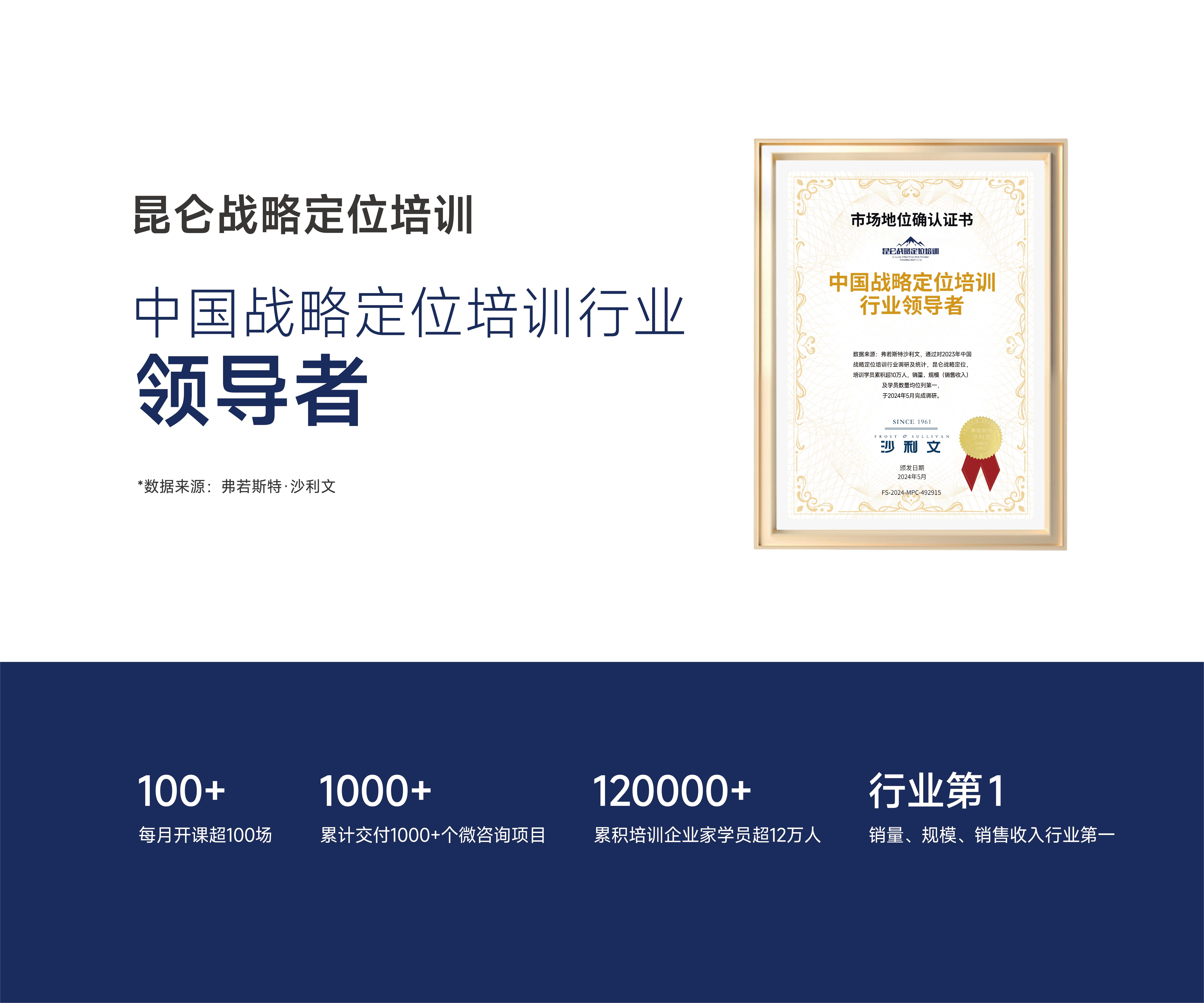 昆仑《战略定位微咨询案》已助力上千家企业找准定位、赢得市场,创下战略定位咨询领域的新纪录,用实效赢得行业认可。这份专业与价值,早已在众多企业的成长蜕变中得到印证: