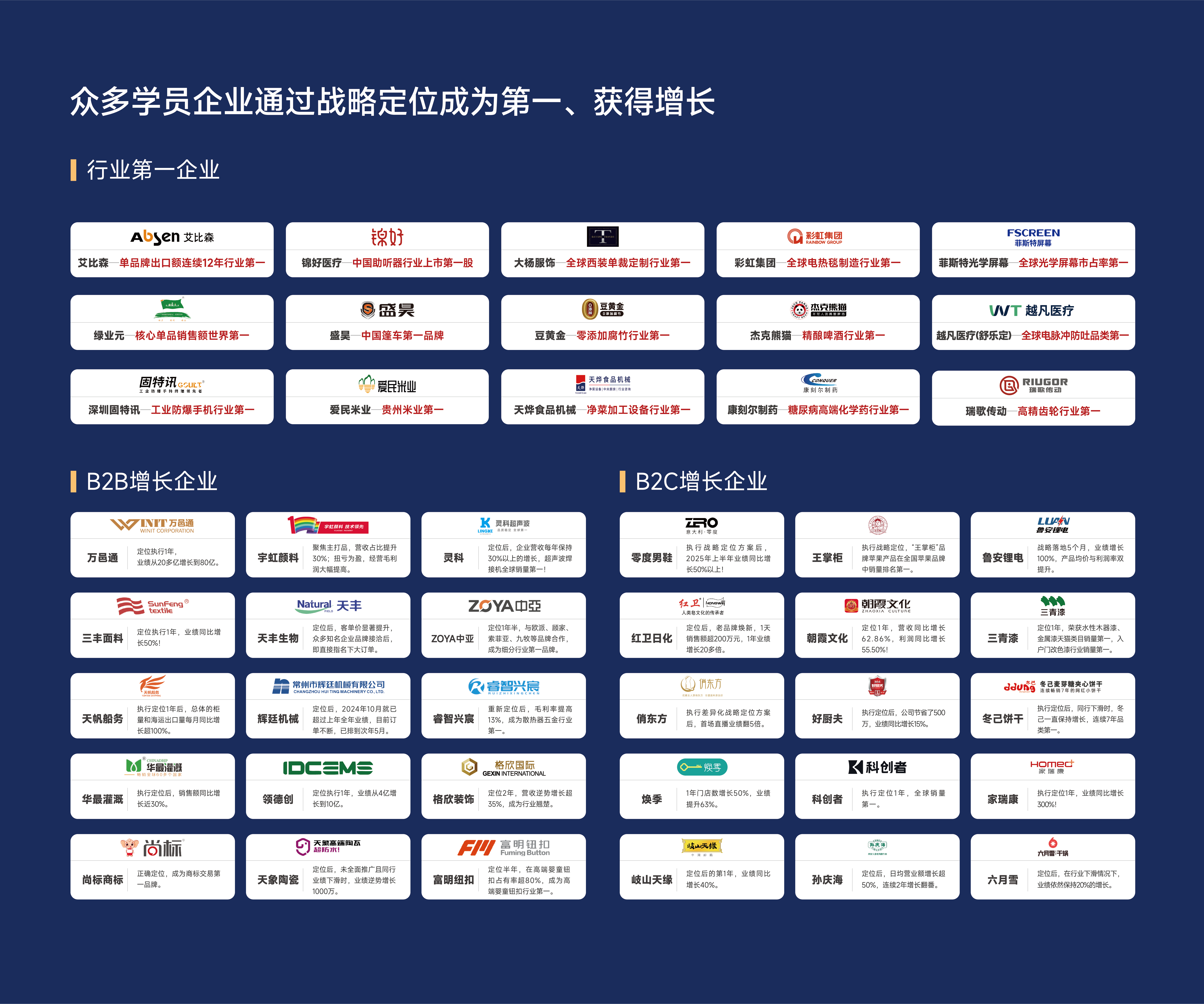 同样回来复训的张总也深有同感:“很多大企业或许在无意中做对了战略定位,但并不系统。尤其是ToB类型的企业,要想走得长远,更需要战略定位。我从去年学习至今,销售额提升了20%–30%,客户质量、利润水平和营业额都有明显改善。相信一年之后,还会有更大的突破。”