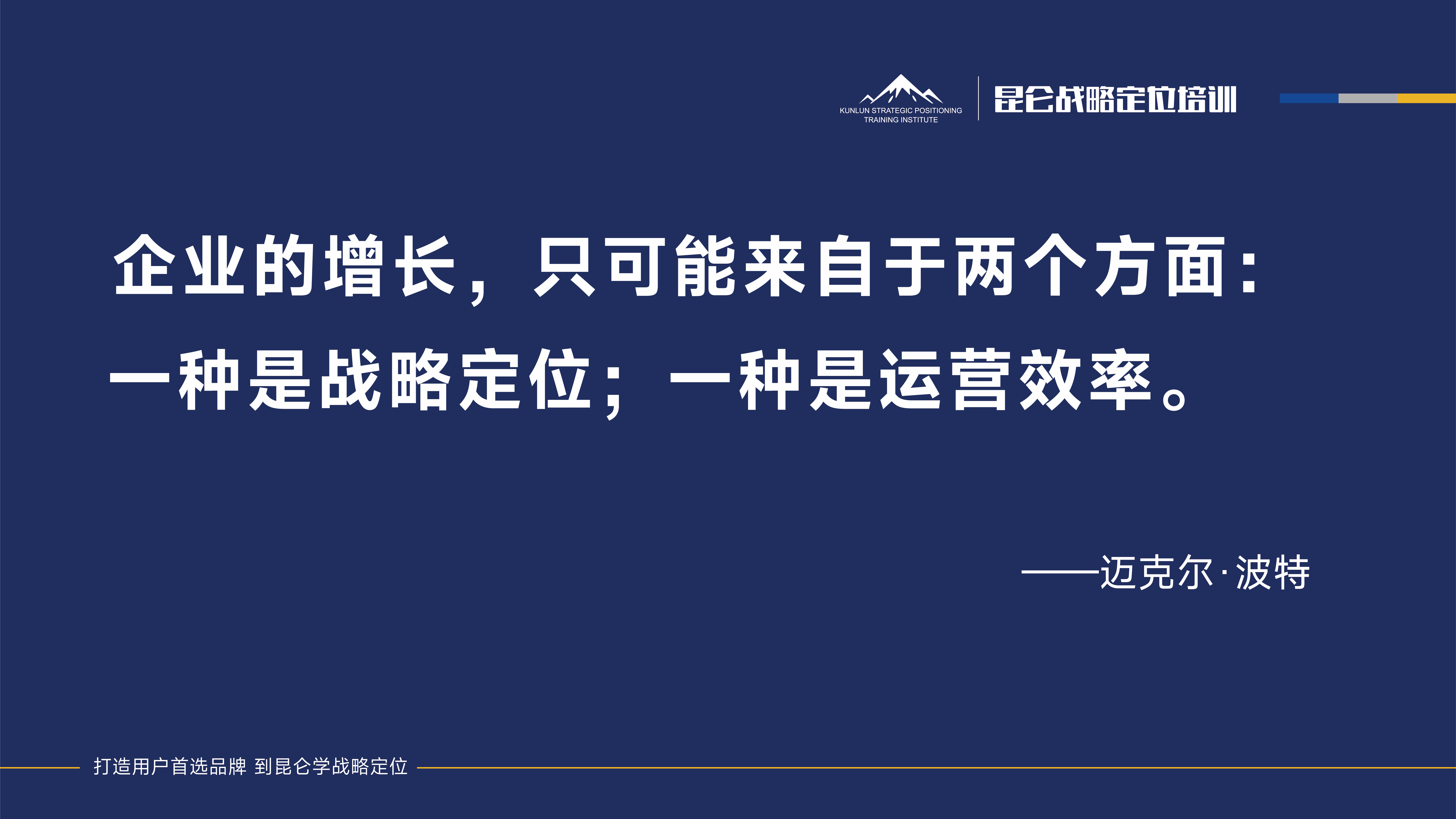 “有人觉得只有大企业才需要谈战略,中小企业用不上,这其实是一种误区或借口。”第二次来到昆仑《战略定位实操班》的孙总一针见血地指出,“如果小企业没有清晰的战略和定位,很难有机会成长为真正的大企业。我们第一次学完回去,仅仅9个月,业绩就实现翻倍。这次再来复训,收获比第一次更大。”